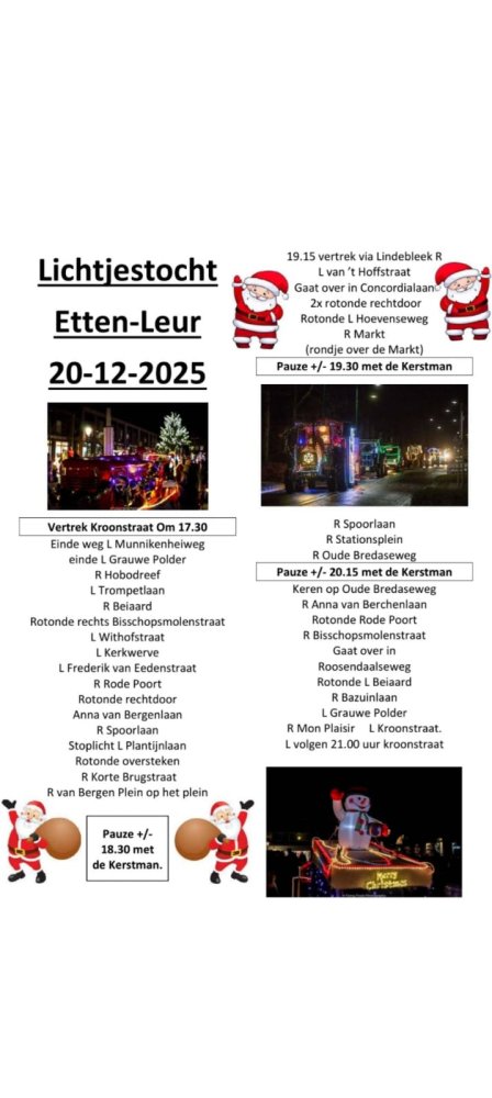 Zaterdag 19 december voert er weer een prachtig verlichte optocht door Etten-Leur. Read more