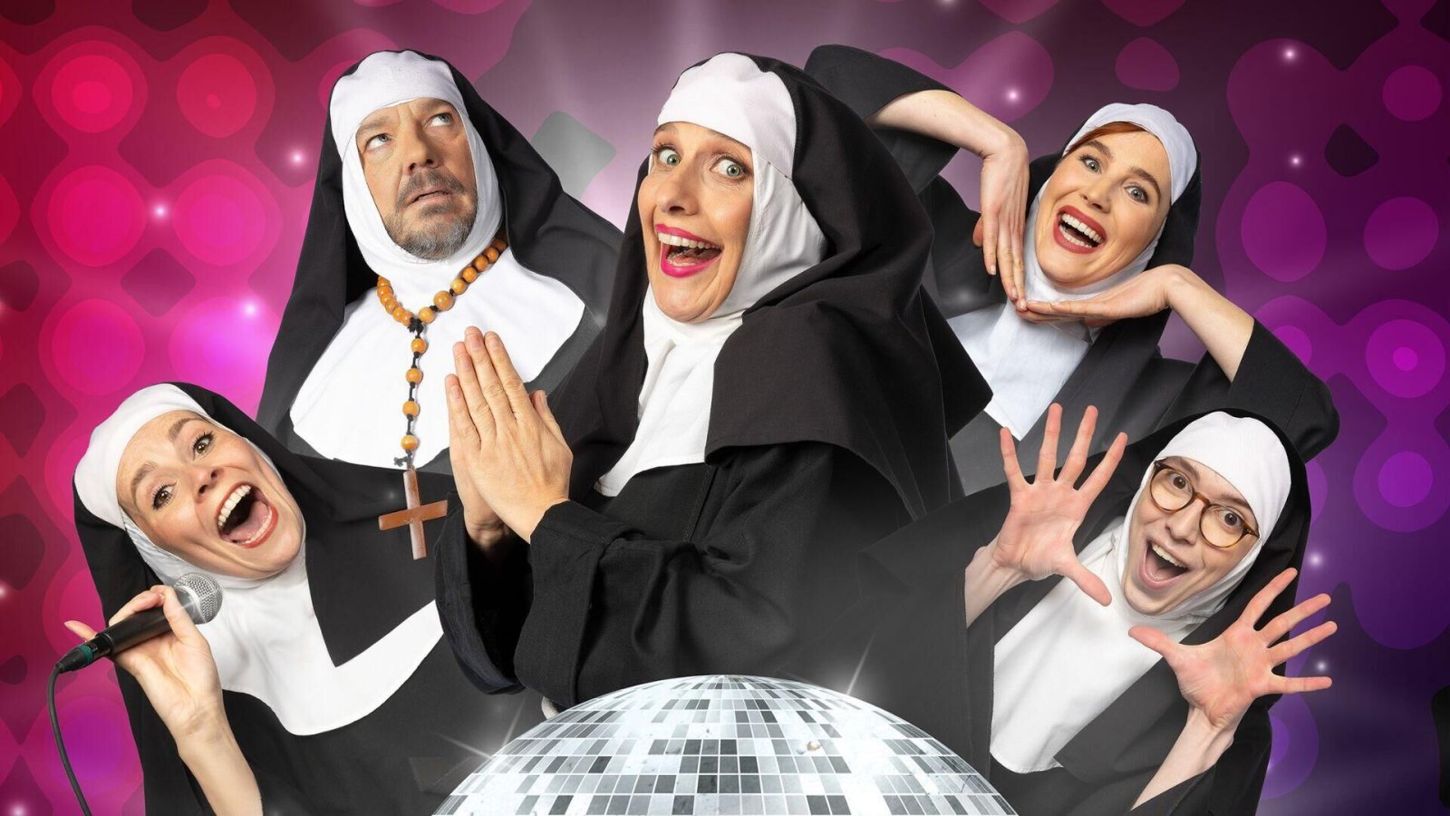 Een spetterende muzikale komedie die geen enkel heilig huisje spaart. Verwacht dansende nonnen, swingende zusters en ondeugende misdienaars met een flinke dosis humor. Moeder Overste doet haar best om de boel in het gareel te houden… maar pas op, want God ziet alles!