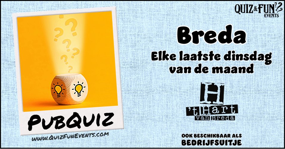 Het is weer tijd voor de PubQuiz Breda bij ’t Hart van Breda!