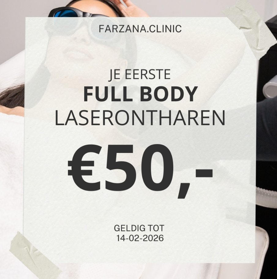 Probeer nu full body laserontharing voor slechts €50! Het perfecte moment om laser uit te proberen en te ontdekken hoe glad je huid kan aanvoelen. Boek snel want deze actie is tijdelijk!