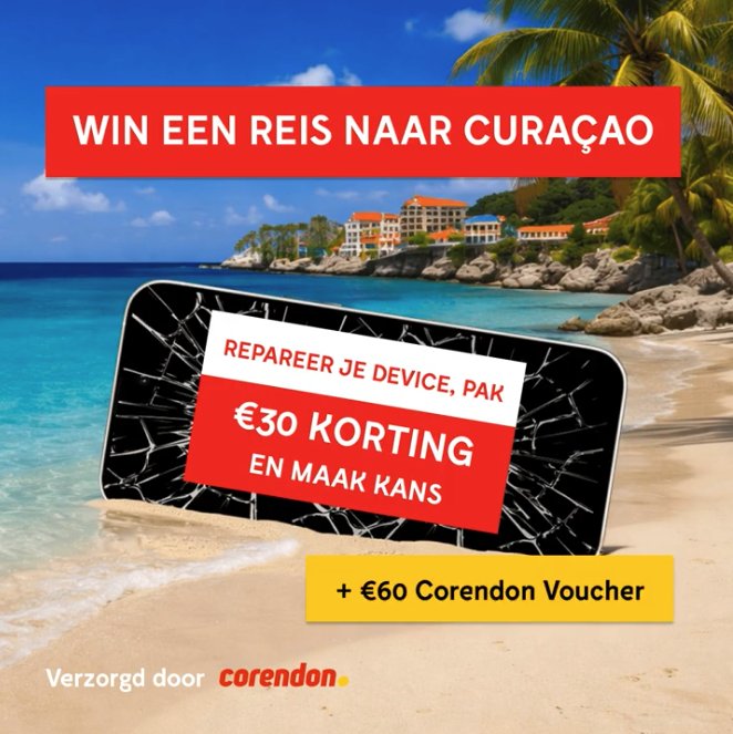 Laat je device repareren en profiteer van korting, een vakantievoucher én kans op een droomreis naar Curaçao.