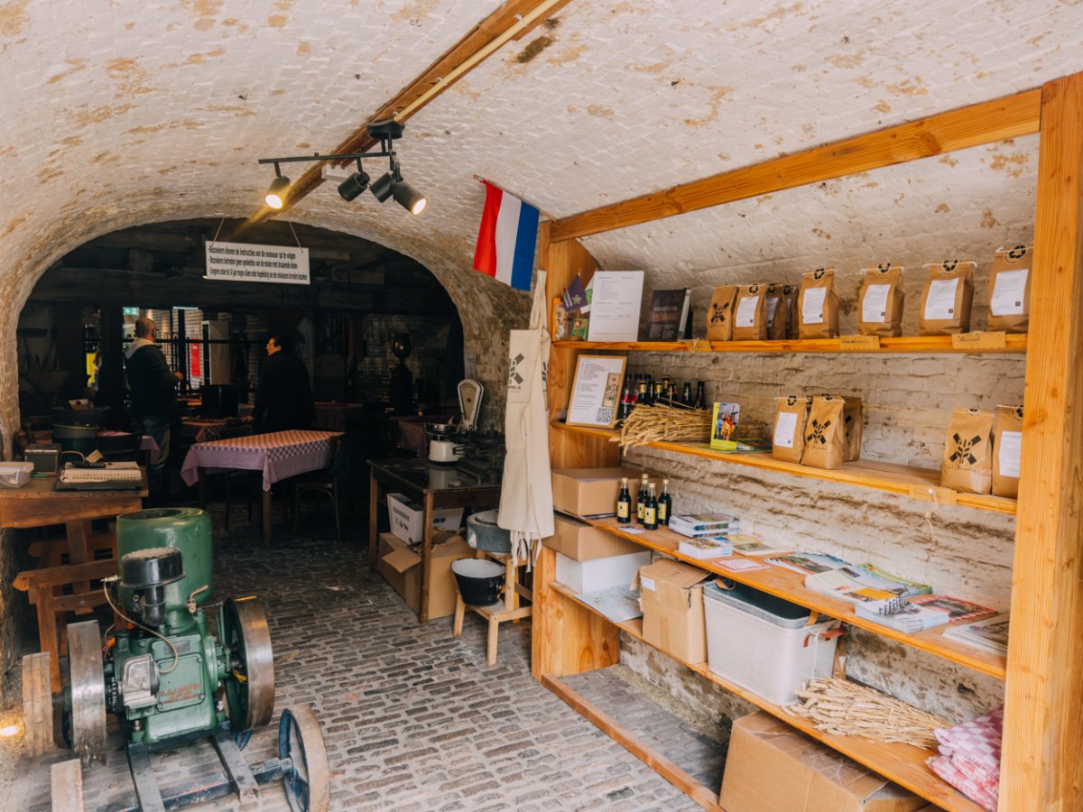 In een apart deel van het pand (onder de molen) is een klein winkeltje, waar je naast meel van de molen straks ook lekkers uit het restaurant kunt kopen.
