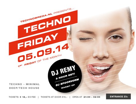 Techno Friday belooft een heerlijke clubavond met goed dansbare techno. Op de eerste editie van 5 september treedt de legendarische DJ Remy op.