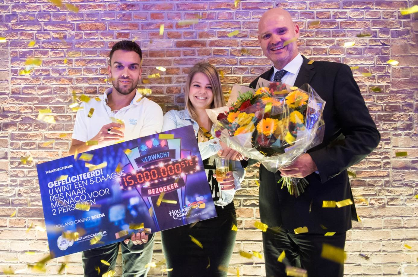 In Holland Casino Breda is vrijdag 30 juni de 15 miljoenste bezoeker feestelijk ontvangen. Uit handen van casinomanager Johan Kamma ontving de gelukkige gast een feestelijke cheque die symbool stond voor een geheel verzorgde 5-daagse reis naar Monaco voor 2 personen.
