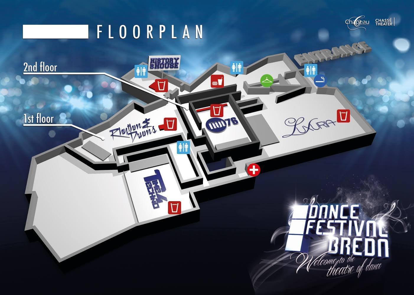 Vanavond om 21:00 uur gaat de tweede editie van Dance Festival Breda van start in het Chassé Theater. Net als vorig jaar is het evenement volledig uitverkocht en zullen er vanavond weer circa 2.500 feestgangers het Chassé op z'n kop zetten. Er zijn in totaal vijf area's, waar verschillende muziekstijlen gedraaid worden.
