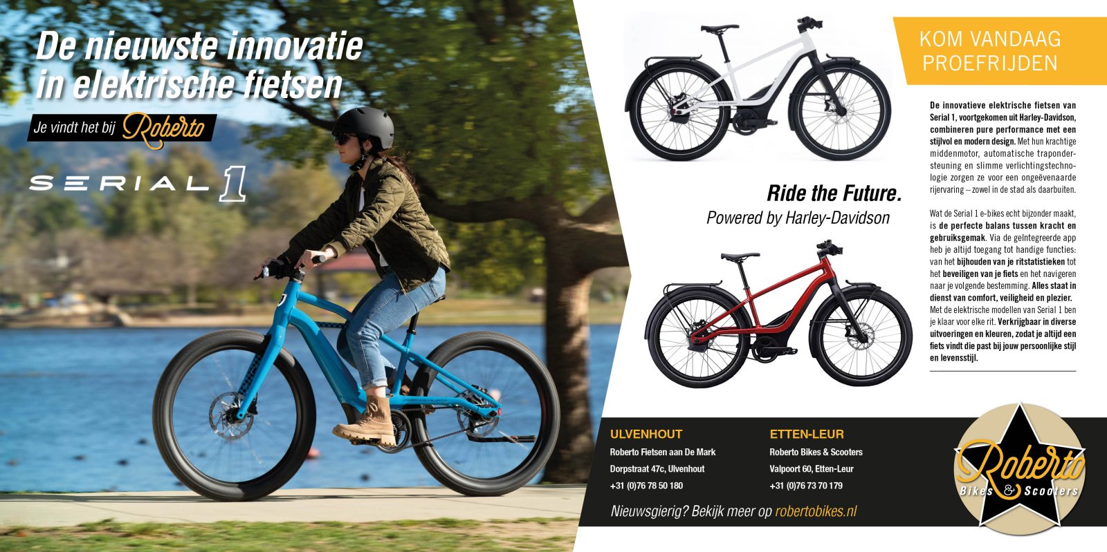 Roberto Bikes & E-Bikes & Parts And Repairs. is gevestigd in het hartje centrum van Etten-Leur. “We hebben voor deze plek gekozen vanwege de ligging. Het is een zichtlocatie, dichtbij de uitvalswegen. Klanten rijden zo het fietspad op voor een proefrit”, vertelt oprichter Rob Van Loenhout. Robertobikes biedt een groot assortiment E-Bikes en (electrische) fietsen, voor elke prijsklasse. Verder zijn in de winkel speed pedelecs, elektrische mountainbikes en racefietsen én accessoires te koop. Ook is er een werkplaats voor het nodige onderhoud.v Read more