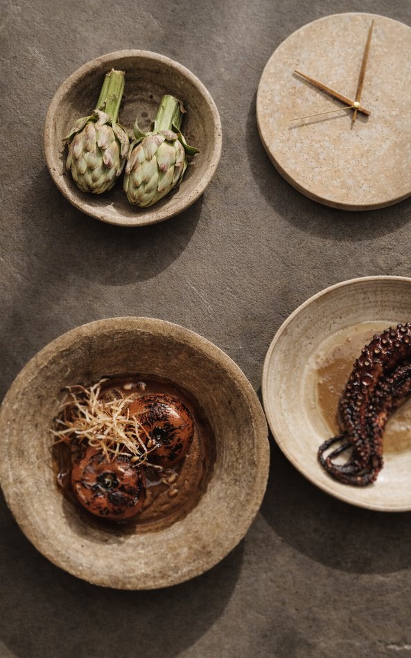 De keuken is geïnspireerd door de Mediterrane en Griekse keuken. Eerlijk, seizoensgebonden en gemaakt om samen van te genieten. Soms licht, soms rijker, altijd met aandacht voor smaak en product. Verfijnd waar het mag, eenvoudig waar het moet.
